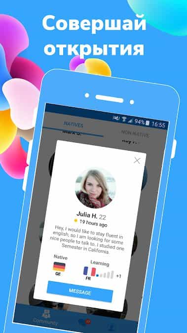 Еще одна программа, которая входит в топ приложений для общения с иностранцами. Сервис поддерживает больше 100 языков и охватывает людей из 180 стран.