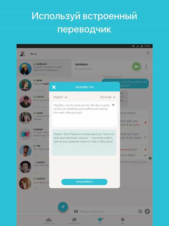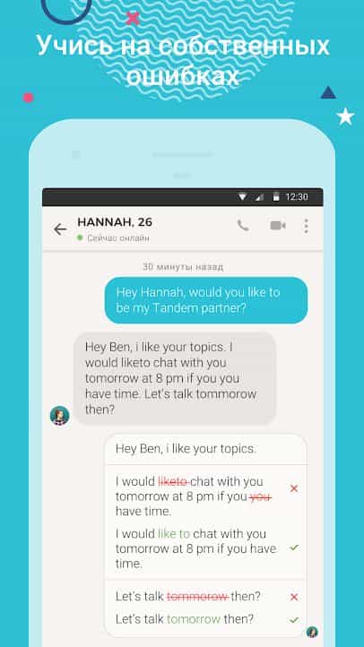 В Tandem популярно взаимное обучение: вы находите англоязычного партнера, который хочет выучить русский, и помогаете друг другу. За отдельную плату можно найти профессионального преподавателя.