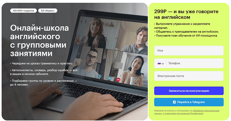 Такая форма популярна в Yes online за счет возможности погружения в языковую среду и легкого тарифа.