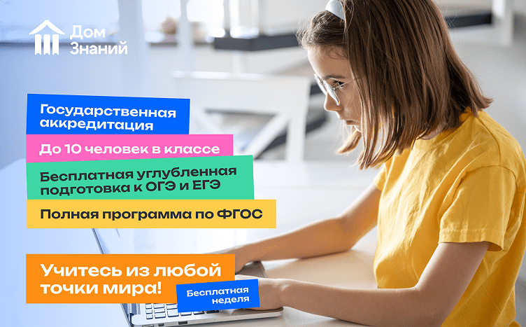В аккредитованной онлайн-школе "Дом Знаний" дети с 1 по 11 класс получают качественное образование, соответствующее стандартам ФГОС, в атмосфере заботы и индивидуального подхода.