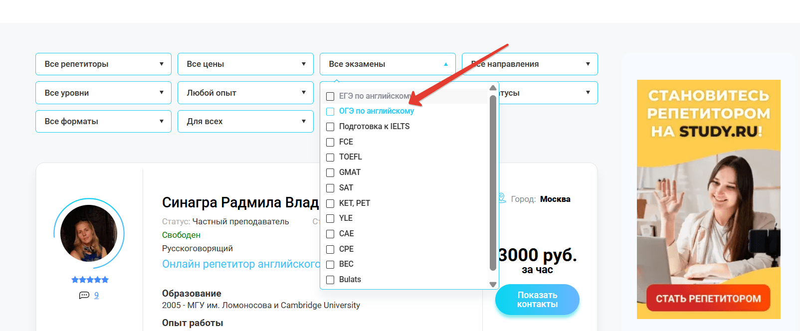 Найти частного репетитора по ОГЭ