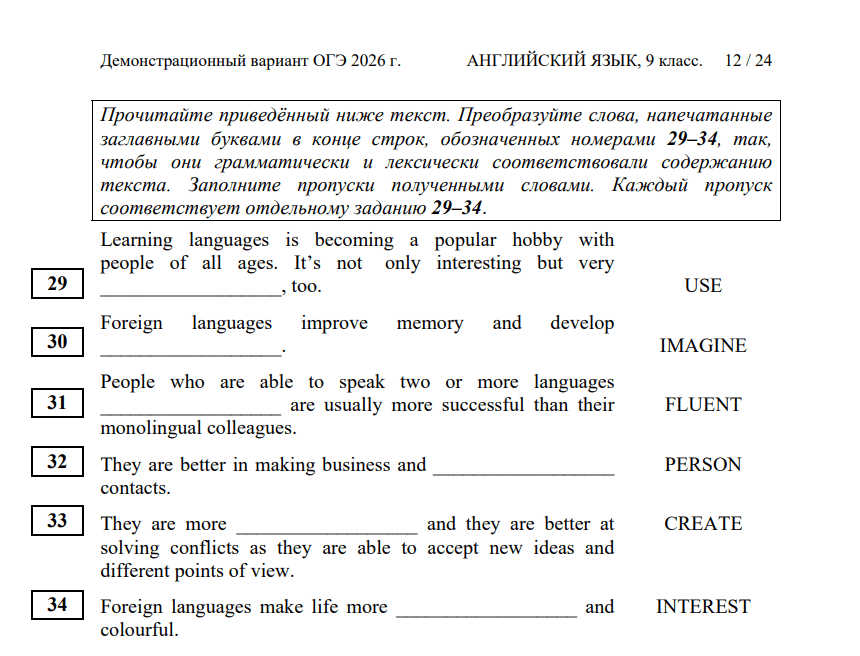 Формат, структура и типы заданий ОГЭ по английскому языку
