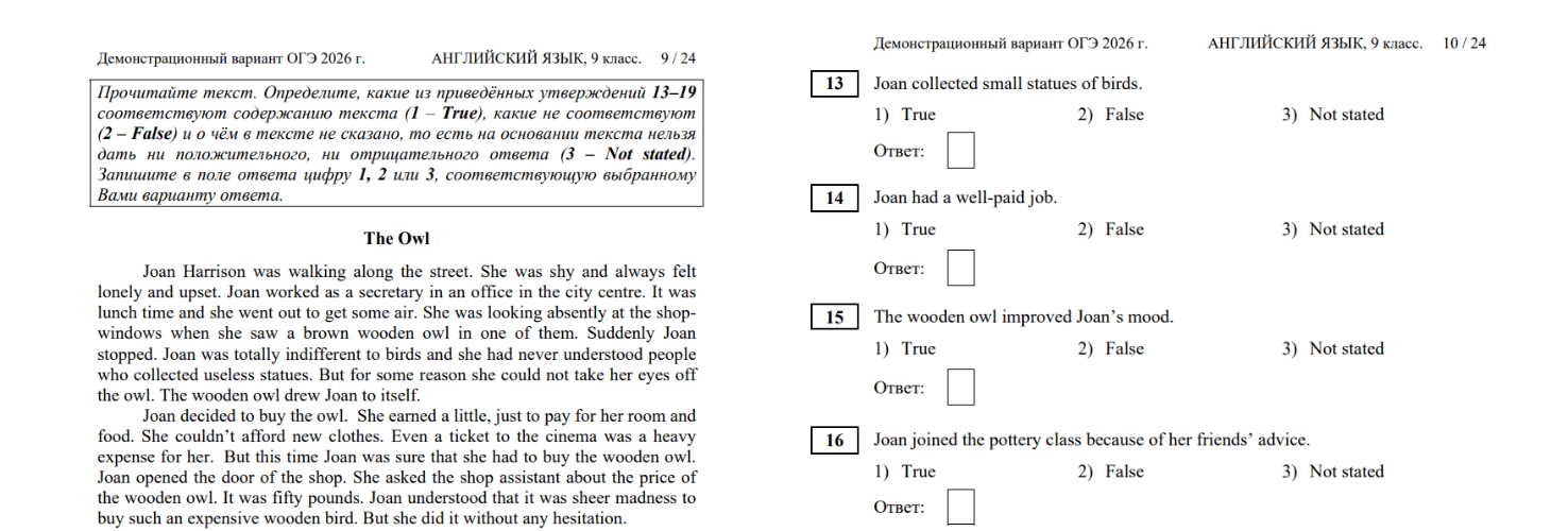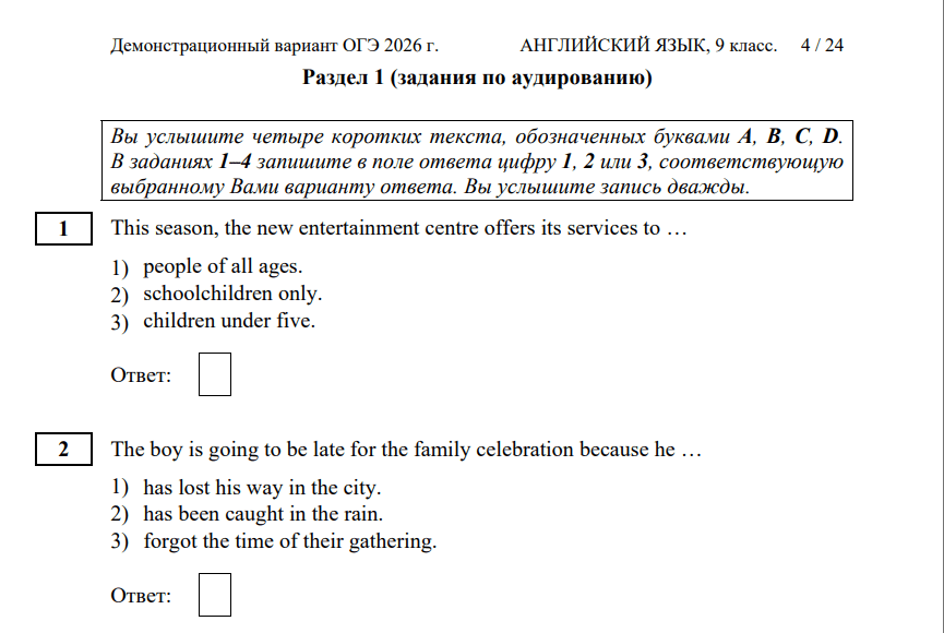 Полностью демоверсии ОГЭ по английскому языку 2026 года доступны на сайте ФИПИ.