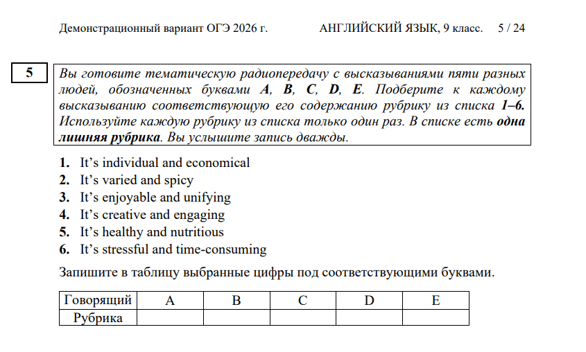 Что делать: прослушать аудио и выполнить задания; аудиозапись проигрывается дважды.