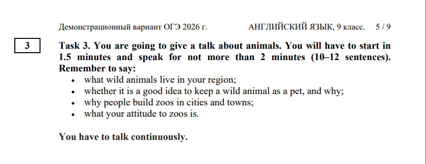 Задание 3. Выступить с небольшим связным монологом по предложенному плану. Нужно говорить в течение двух минут.