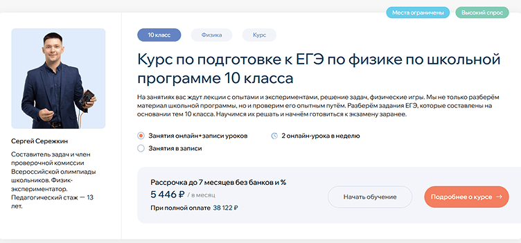 Умскул делает ставку на дисциплину и регулярность. Подготовка к ЕГЭ по физике здесь проходит в четком ритме: темы идут одна за другой, а каждую из них сопровождает практика. Такой формат помогает не выпадать из обучения и поддерживать рабочее состояние на протяжении всего курса. Темп занятий ощутимый, но за счёт повторений материал закрепляется. Школьников постепенно приучают к формату экзамена: к объёму заданий, времени и логике построения вариантов. В результате к весне ученики уже не теряются перед тестами и чувствуют себя увереннее.