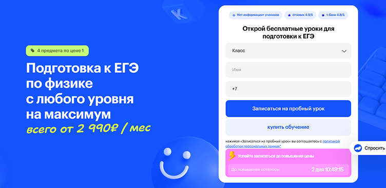 ЕГЭLand ориентирован на школьников, которым важно чувствовать прогресс. Подготовка к ЕГЭ по физике здесь выстроена так, чтобы ученик регулярно видел результат своих усилий. После каждой темы идут задания формата экзамена, поэтому знания сразу переходят в практику. Особое внимание уделяется разбору сложных задач. Преподаватели объясняют не только решение, но и ход мыслей, чтобы ученик понимал логику. Это помогает увереннее справляться со второй частью и постепенно повышать уровень баллов.