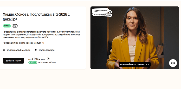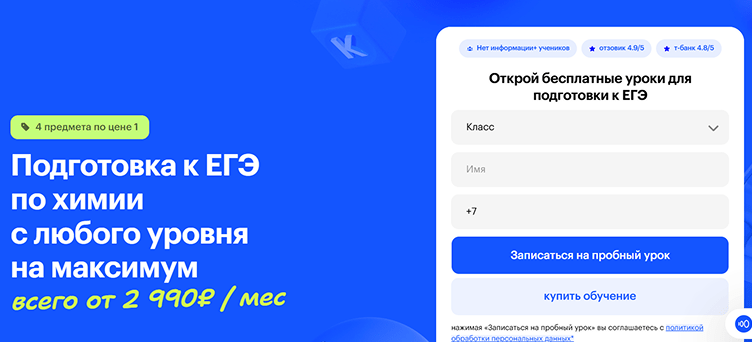 Skysmart предлагает персонализированный подход к обучению через индивидуальные занятия с репетитором на собственной интерактивной платформе. Виртуальный класс объединяет видеочат с преподавателем, интерактивную доску, учебник и тренажеры для мгновенного закрепления материала. Каждое занятие строится в формате живого диалога, где теория сразу подкрепляется практикой. Программа обучения адаптируется под цели и пробелы конкретного ученика, что делает подготовку к ЕГЭ по химии максимально эффективной.