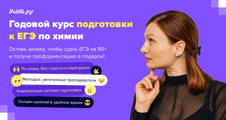 Онлайн-школа «Учёба.ру» предлагает выпускникам проверенный маршрут подготовки к ЕГЭ по химии. За 5 лет работы более 12 тысяч выпускников смогли поступить в профильные вузы благодаря этим методикам. Курсы составляются действующими экспертами и преподавателями ведущих университетов с полным соблюдением ФИПИ и регламентов экзамена.